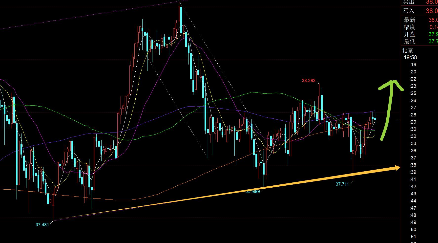 Silver: Silver's short-term trend is in line with technical laws. The Asian session pulls up, the European session fluctuation continues, the US session pulls up again, the US session pulls up again, yesterday, and today will be the same; in the morning, the bottom hits the lower track of the channel 37.7 and the support stabilizes, the bottom hits up, the European session fluctuation continues to rebound, and the US session can continue to be bullish, the intraday low is the feng shui hill, the resistance target is 38.25, and the breakthrough is again 38.4; the trend is relatively slow, the space is not large for the time being, and the short-term needs to close when it is better;