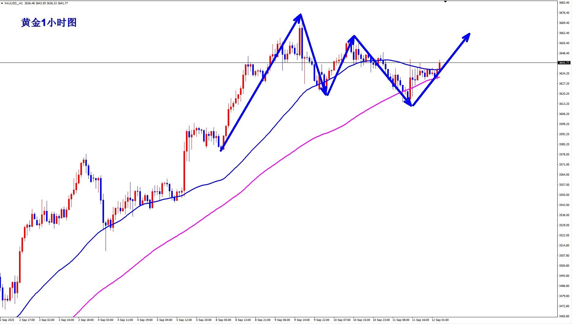 Although the gold 1-hour moving average begins to flatten, as gold rises, the moving average will continue to turn upward, and gold bulls still have great opportunities. The gold 1-hour pattern is still fluctuating now, but gold is now a bullish trend, so the current fluctuation of gold is just a relay of the rise. Gold held the 3620 line yesterday, and fell back to 3620 in the morning and continued to go long at lows.