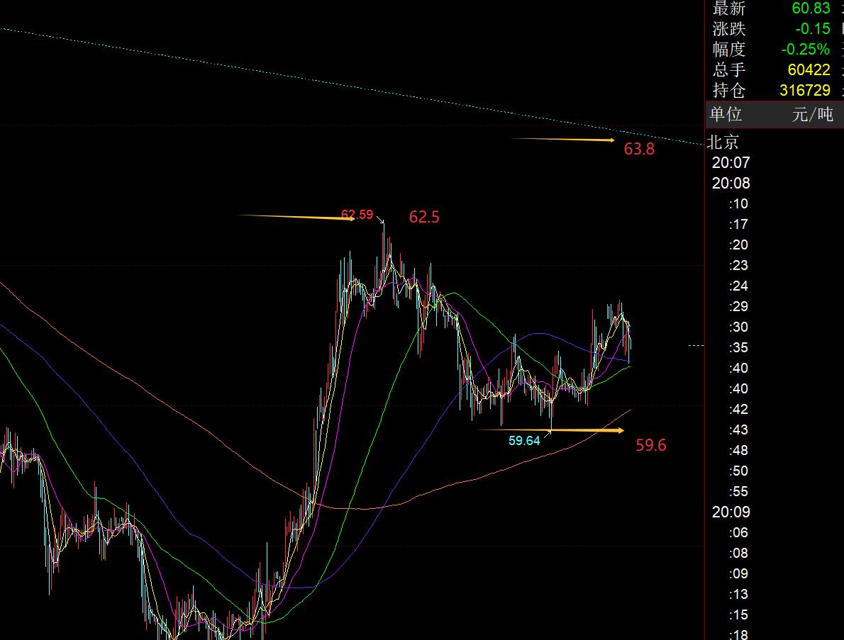 Third, crude oil: It is also volatile, with resistances of 62.5 and 63.8, support of 59.6, and treatment within the range;