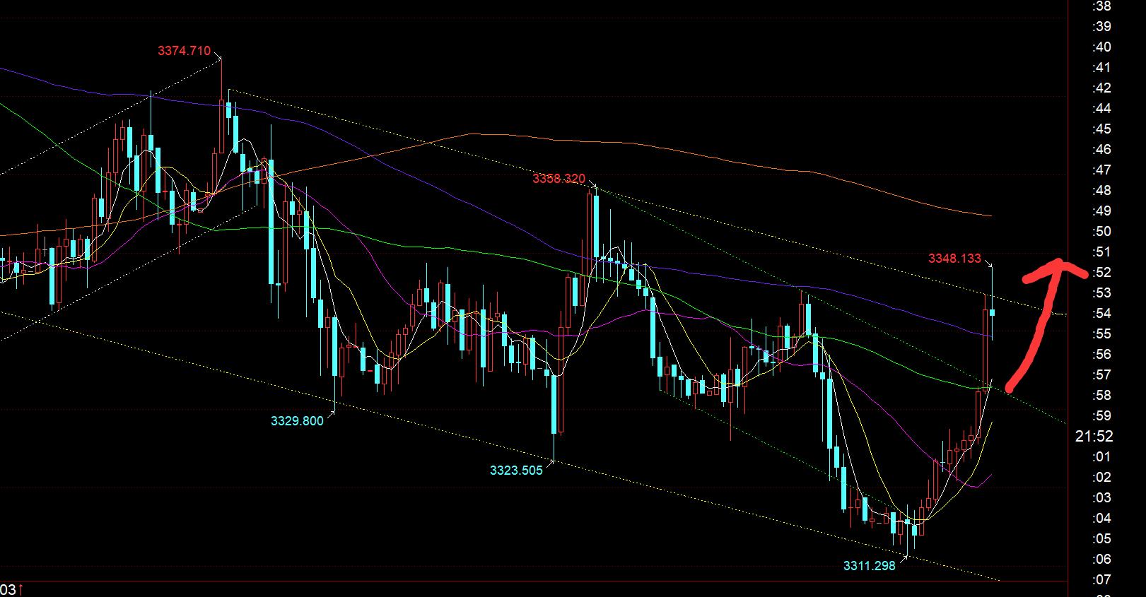 tan efectivo, el 3311 de hoy es alcista, lo que está en línea con la predicción nuevamente. La mañana pide que se vea alcista primero. La resistencia a corto plazo da 3332-35, que es la posición 618 dividida del declive de ayer; Pero la tendencia de hoy, la línea por hora ha aumentado continuamente, con signos de VApareció, y el gran positivo cerró al nivel de resistencia de 3332 a las 20 en punto, por lo que inmediatamente recordé no ser bajista. Es posible que realmente mantenga un pequeño lado unilateral hoy, a diferencia del lunes, que es un pequeño lado unilateral durante el día y un regreso a su forma original por la noche. Debido a que la diferencia es que el lunes, la sesión europea fue suprimida y todas son líneas negativas, mientras que hoy la sesión europea es todas líneas positivas, y continúa rompiendo los máximos. Ahora pruebe la posición 3345. Una vez que se rompa la estación, sea más cauteloso cuando esté a corto plazo, entonces el 3311 probablemente se convertirá en un nuevo fondo a corto plazo. Puede atacar hasta 3390 y 3400, etc., lo que también está en línea con la idea de vender el fondo por encima de 3300;