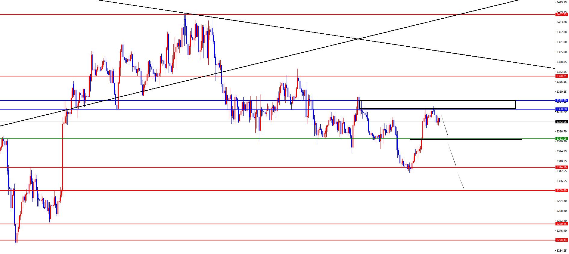 oro 3350-55 es corto en el área, con una defensa de US $ 10, y un objetivo de 3310-3300-3280
