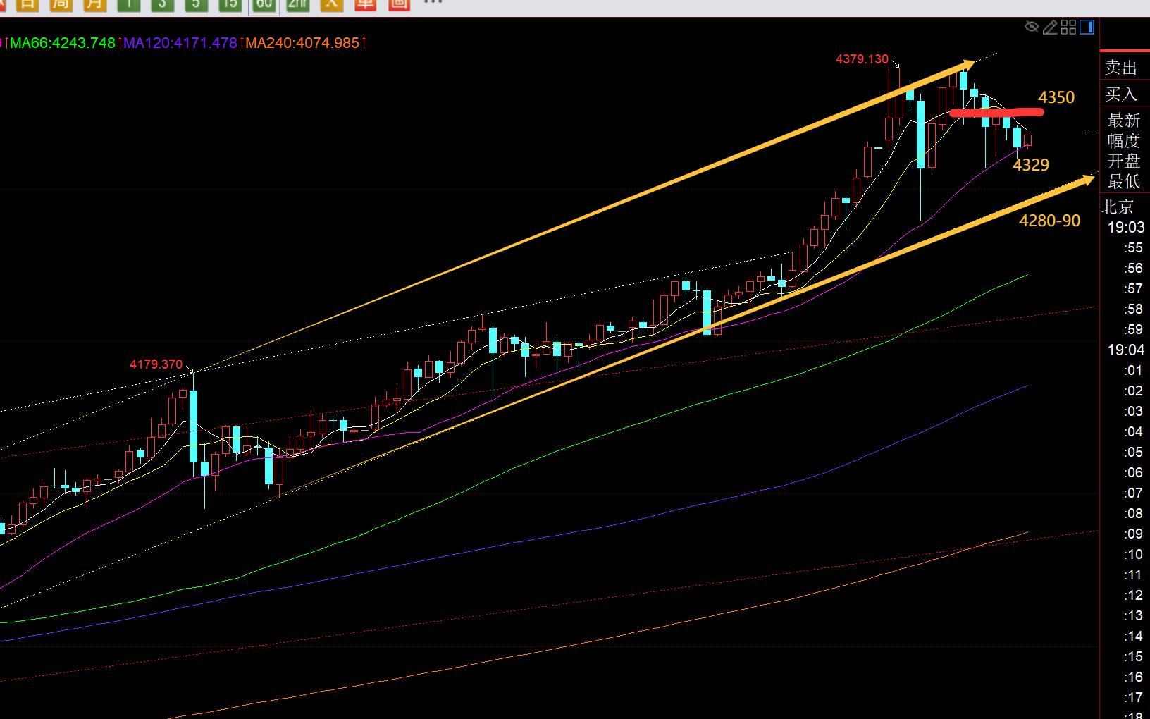 En tercer lugar, el nivel horario dorado: según la imagen de arriba, actualmente se encuentra en el canal ascendente amarillo, y el El carril superior ha estado dos veces bajo presión en la línea 4380. Hay un cierto doble techo, pero debe caer por debajo del mínimo de 4280-90 por la mañana para formar una supresión efectiva de la cabeza M; sin embargo, el mercado europeo se encuentra en un período de declive continuo del shock Yin y Yang único, y hay demasiadas líneas negativas, lo que sugiere que la energía cinética descendente se está acumulando; el soporte clave es el camino intermedio, que sube a 4329 en este momento. Una vez que el Yin grande o el Yin continuo rompan efectivamente la posición, básicamente continuarán golpeando el mercado hacia abajo; si rompe el mínimo intradiario, puede apuntar rápidamente al punto de retroceso inicial del canal de primera línea 4220 que resulta ser la posición del promedio móvil diario 5, y luego observar si se estabiliza. Si la línea diaria se repara, entonces las perspectivas del mercado pueden continuar audazmente buscando caídas y seguir la tendencia para ver subidas y subidas; si 4220 no se puede mantener, entonces la tendencia a la baja es 4162; la resistencia es clara. La posición que soporta presión del nodo es 4350, que es la posición lateral del mercado europeo y el punto de supresión de la media móvil de 10. Si vuelve a romperse, puede ser un lavado repetido hasta alcanzar el máximo intradiario. También debes estar preparado para esto; en resumen, cuidado con una ola de corrección del mercado esta noche;