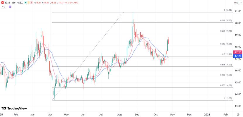 Por ejemplo, la entrada de Li Ning en la plataforma minorista instantánea ha planteado requisitos más altos para la selección en tienda, la eficiencia del embalaje y la dotación de personal. Si el proceso no se gestiona adecuadamente, puede aumentar los costos operativos de una sola tienda. Las plataformas de venta instantánea suelen cobrar una determinada www.xn--xm-5s9cx14e.comisión y las promociones pueden ser más frecuentes. Es necesario prestar atención a su impacto final en el margen de beneficio neto del producto. El precio de las acciones de Li Ning subió significativamente de la noche a la mañana en Estados Unidos, pero las acciones de Hong Kong no siguieron su ejemplo hoy, estableciendo un nuevo máximo desde el 10 de septiembre y luego retrocediendo. Si cierra por debajo de 18 dólares de Hong Kong durante el día, se enfrentará a la presión de caer a 17,20 dólares de Hong Kong. En ese momento se prestará atención al soporte clave formado por las principales medias móviles en el gráfico diario.