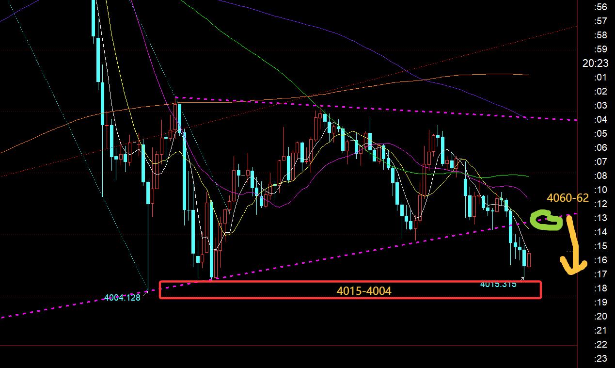 Cuarto, el nivel horario dorado: en la imagen de arriba, el triángulo de convergencia inferior se ha roto continuamente durante el mercado europeo hoy. Luego habrá un rebote antes y después del mercado estadounidense, lo que es fácil de atraer a los alcistas. Hay una segunda tendencia a la baja. Preste atención al punto de contrapresión del canal 4060, que se encuentra bajo presión a corto plazo. Bajista, el soporte inferior es 4015 y 4004. Si se pierde la marca de 4000, preste atención a 3975, 3945 y el límite es 3914. Personalmente, creo que el espacio inferior no es grande o el tiempo no es duradero. Estará abajo en 2 horas y 4 horas. Desde el punto de vista estatal, es fácil sorprender el rebote de sobreventa tirando hacia abajo; por lo tanto, trate de no perseguir la caída antes de que se produzca el rebote; Además, si el precio supera 4060 y vuelve a subir y regresa al triángulo de convergencia, expandirá el rango de convergencia y continuará consolidándose, o se estabilizará lentamente y subirá. No se puede ser ciegamente bajista; por lo tanto, si va a ser bajista por segunda vez esta noche, el precio de cierre no debe volver a caer dentro del triángulo morado del gráfico. Si desea ser alcista en un nivel bajo, debe esperar hasta que se www.xn--xm-5s9cx14e.complete la segunda caída o haya señales estables cerca de los soportes mencionados antes de considerar;