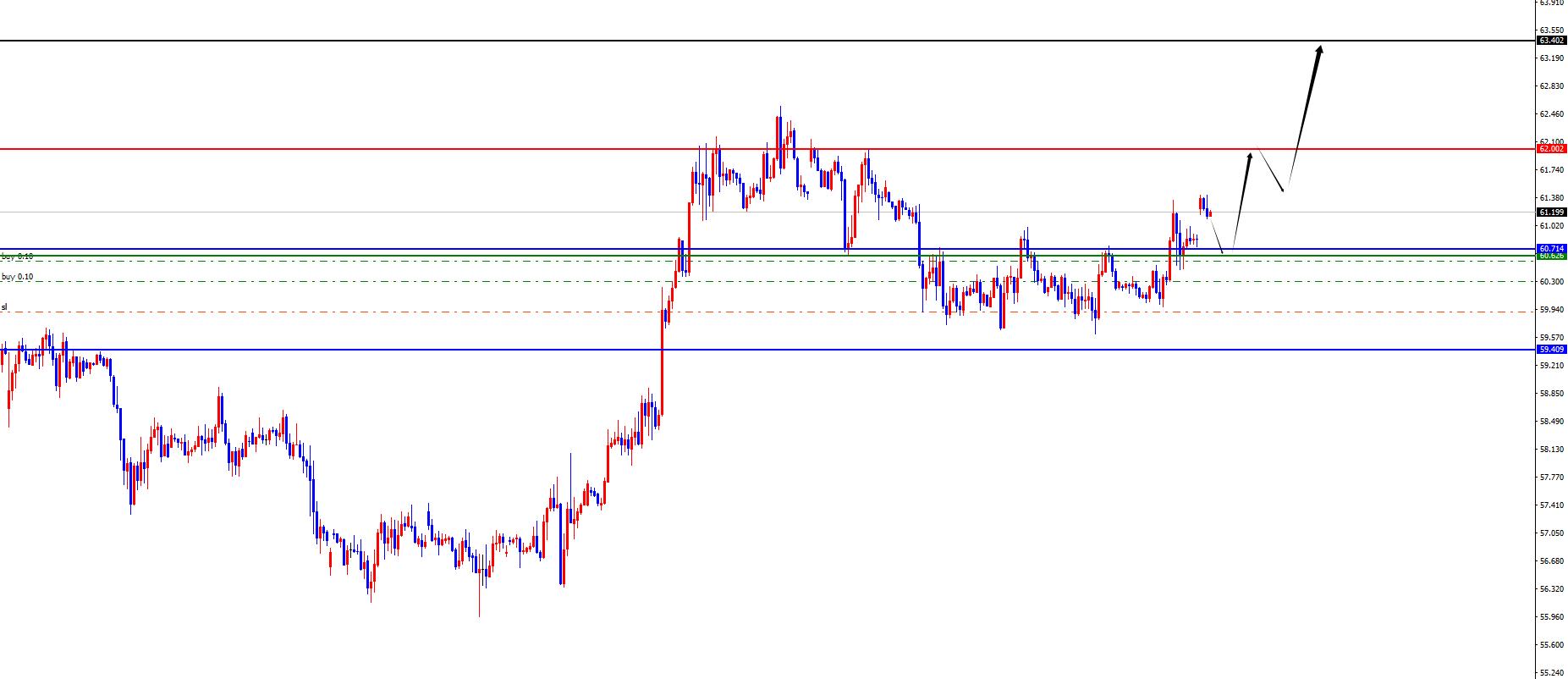 El punto de inflexión clave es 60.60-70, el precio será alcista en el corto plazo por encima de esta posición