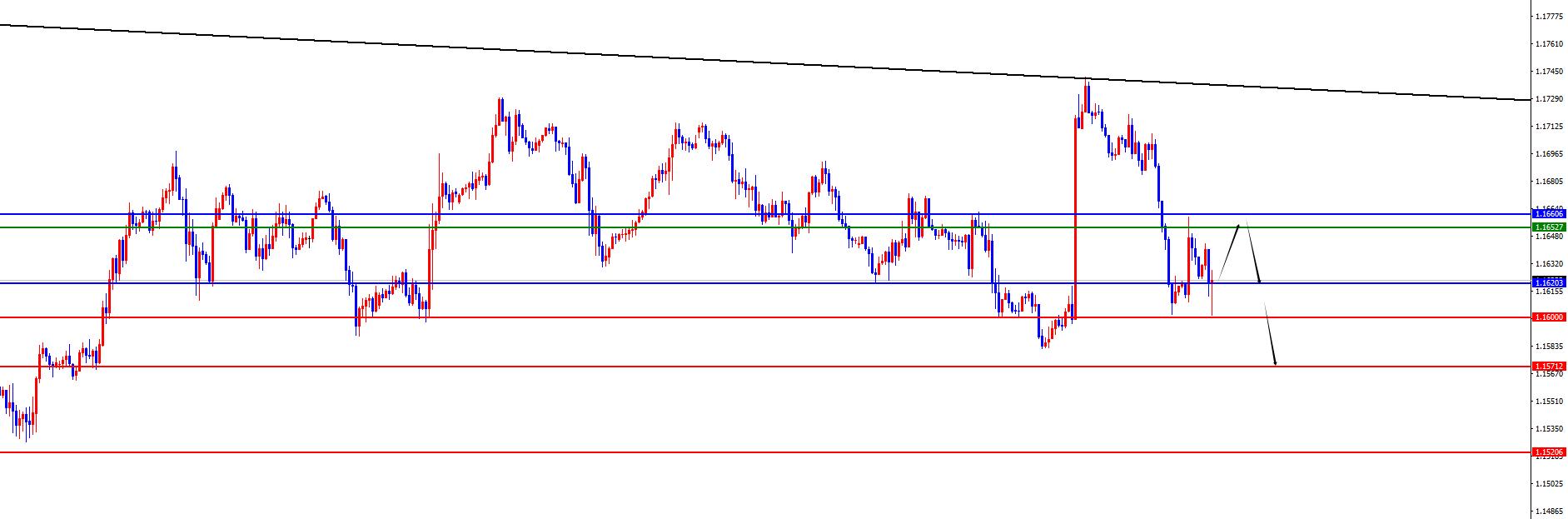 유럽과 미국 1.1650-1.1660 범위는 비어 있고, 방어는 40 점이며, 대상 1.1620-1.1570-1.1520