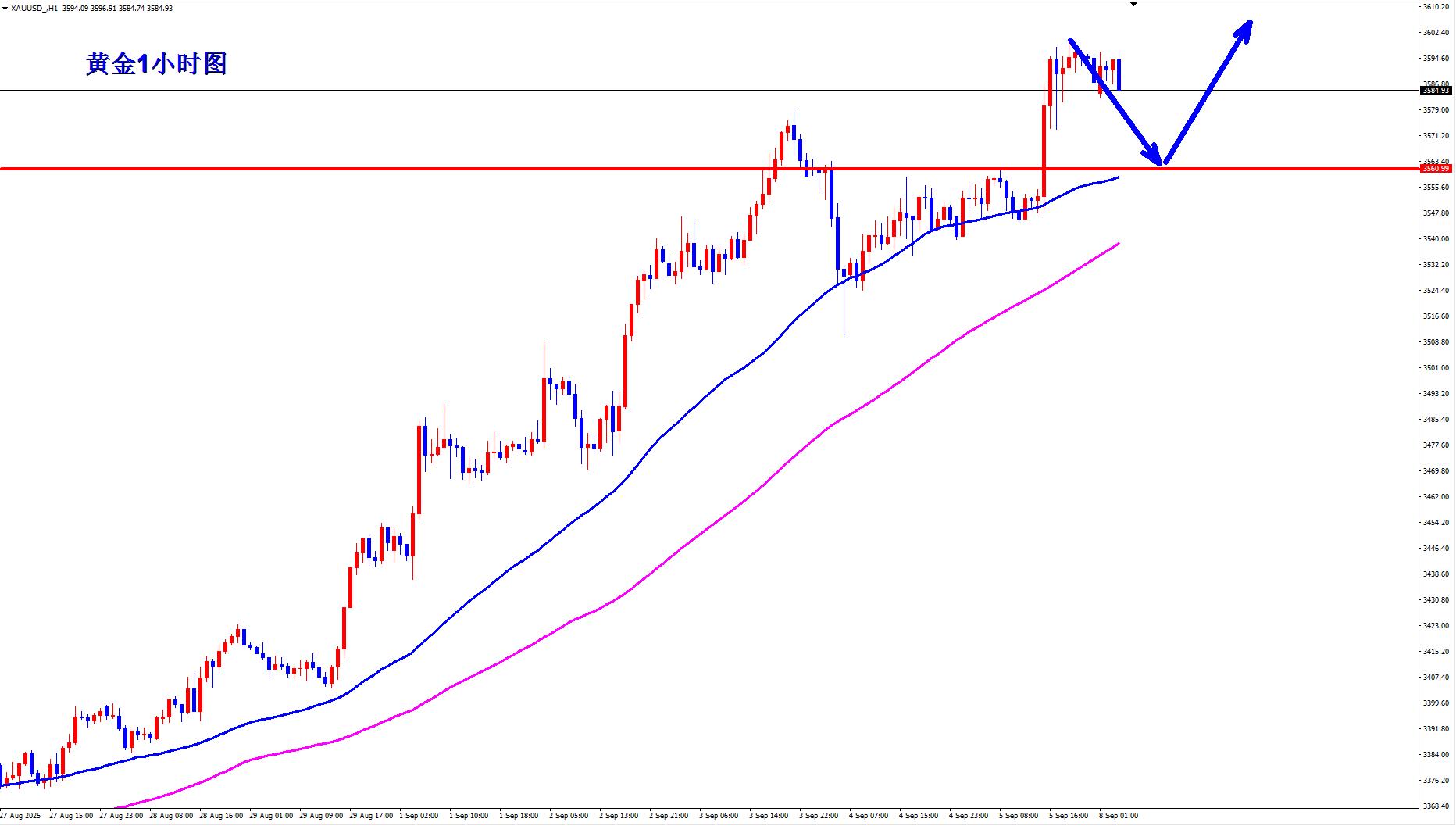 골드는 3560, 정지 손실은 3545, 대상은 3590-3600입니다.