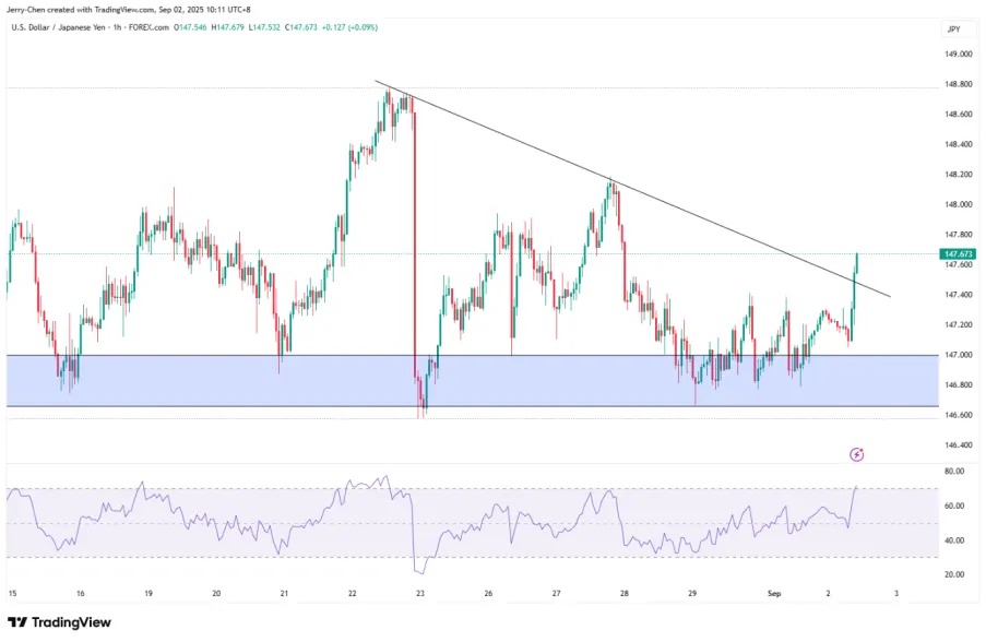 不过从日线结构以及美日利率政前景(美国降息,日本加息)来看,汇价想要脱离147-149区域可能还需要一定的时间。