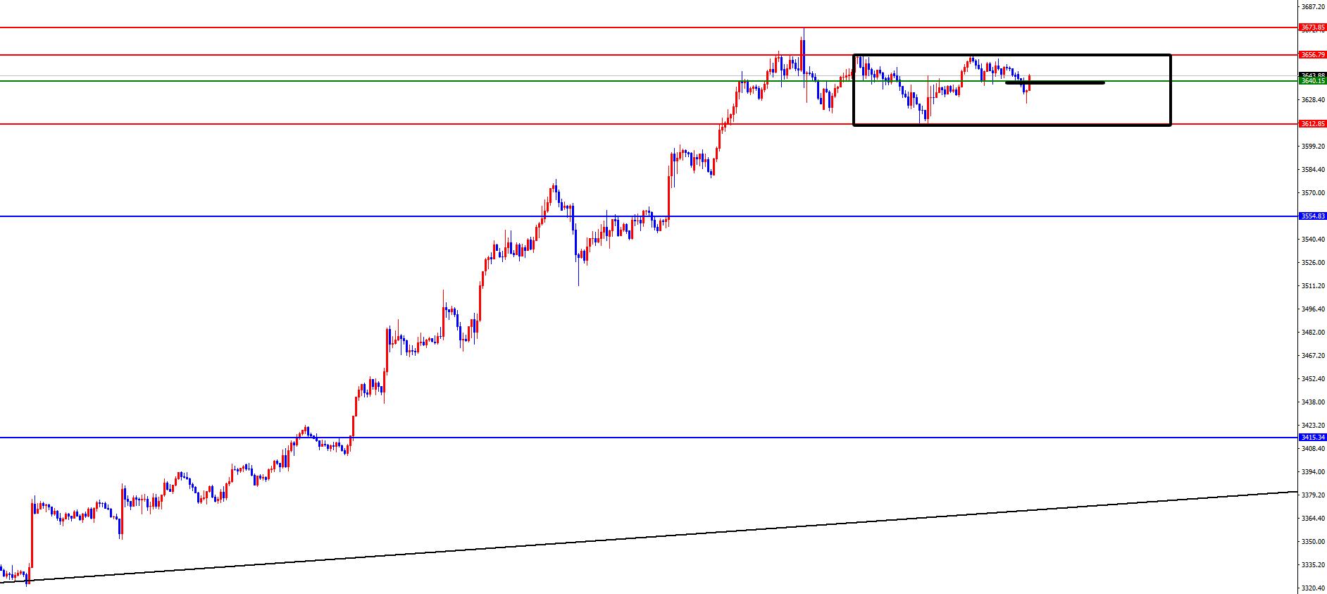 O ouro se concentra na oscilação da faixa de 3615-3657, e 3640 é a bacia hidrográfica