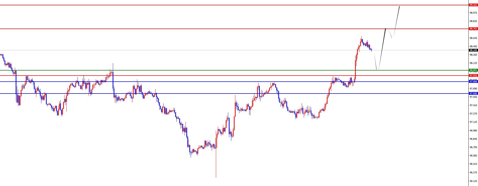 O índice em dólares dos EUA tem um preço de ouro de 97.90-98, www.xn--xm-5s9cx14e.com uma defesa de 5 dólares e um de 97.7.90-98
