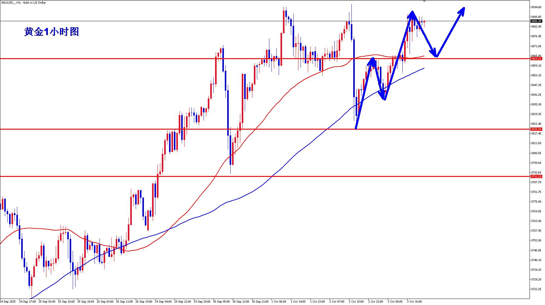 O ouro é superior a 3863, a proteção é 3850, o alvo é 3890-3900;