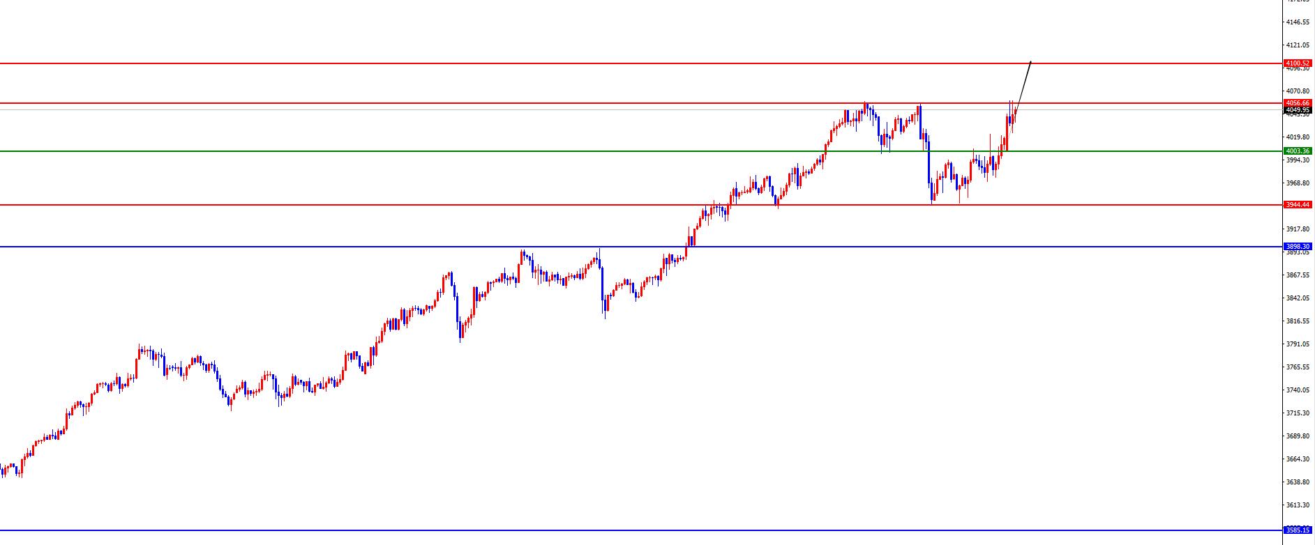 A mínima inicial do ouro de 4003,76 é o divisor de águas intradiário, e os preços acima desta posição terão uma continuação de alta.