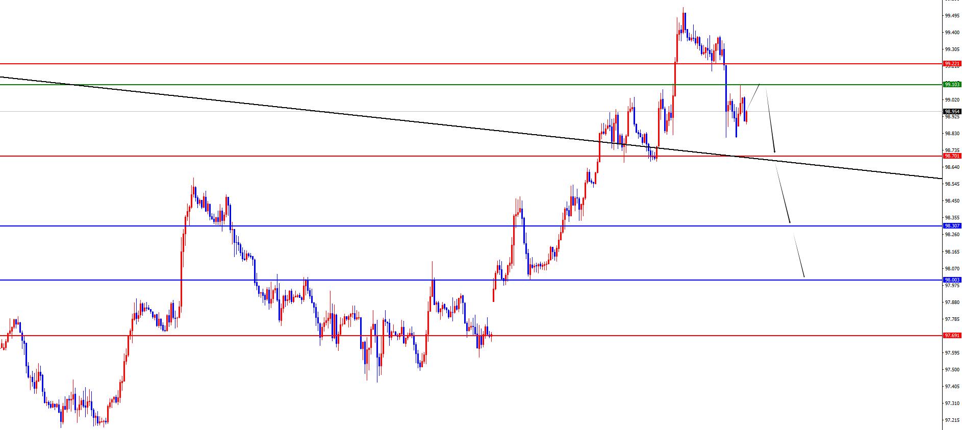 O índice dos EUA está vazio na faixa 99,10-20, defendendo 5 dólares americanos e visando 98,70-98,30