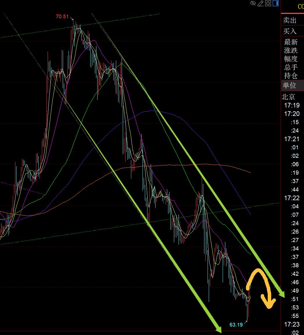 原油方面:日線級別原油已六連陰,且失守了66日均線,它會成為反壓,因此65.5之下壓力仍在,逢高壓制繼續看下探,下一個關鍵位置或又指向60關口;不過,短週期macd始終存在底背離狀態,或隨時出現超跌反彈,但前提至少要突破站上圖中的下降通道上軌64.8;因此,未衝破此通道之前,反彈先維持看跌;