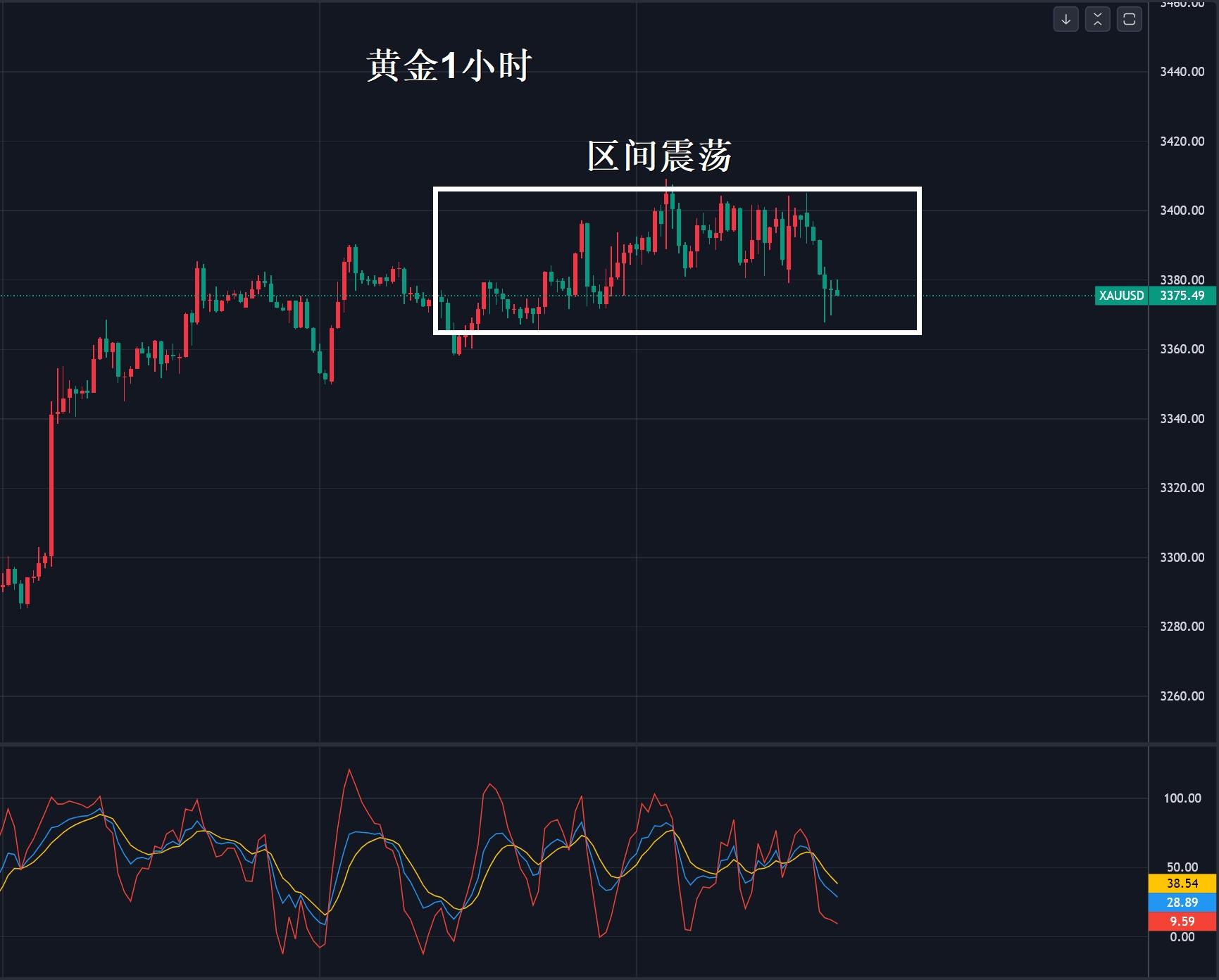 等非農,等貿易關稅,等美聯儲政策,一個一個等完了回頭了看還在區間裡面轉圈。幾次沖到3400就歇菜了,跌到3300以下也待了不多久。