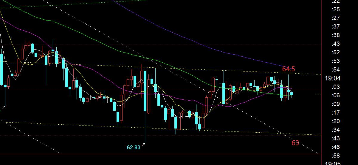 原油方面:短期還是處於弱勢,只不過前幾日的下滑通道有所突破了,這幾日就要謹慎出現超跌反彈,也去修復下macd背離;今晚關注64.5阻力,支撐63,靠近63企穩嘗試反彈,或者突破站穩64.5之後,回踩確認此處去跟隨反彈;若能出現超跌反彈,上方首要壓力位66;