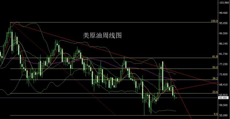 美原油市場上週開盤在63.58的位置後行情先拉升給出64.7的位置後行情承壓回落,週線最低給到了62.06的位置後行情震盪拉升,週線最終收線在了63.26的位置後,週線以一根上下影線等長的長腳十字星形態收線,而這樣的形態收尾後,本週63.5空止損64,跌破看62.5和62,跌破看61.6和61.4.