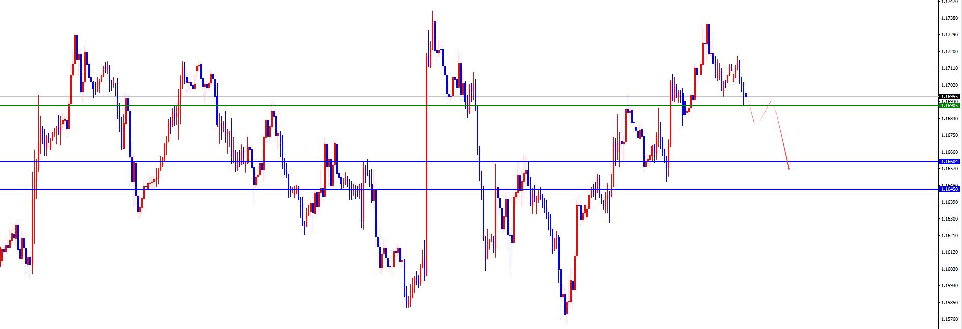 歐美跌破1.1690後反彈空,目標1.11.1660-1.1645