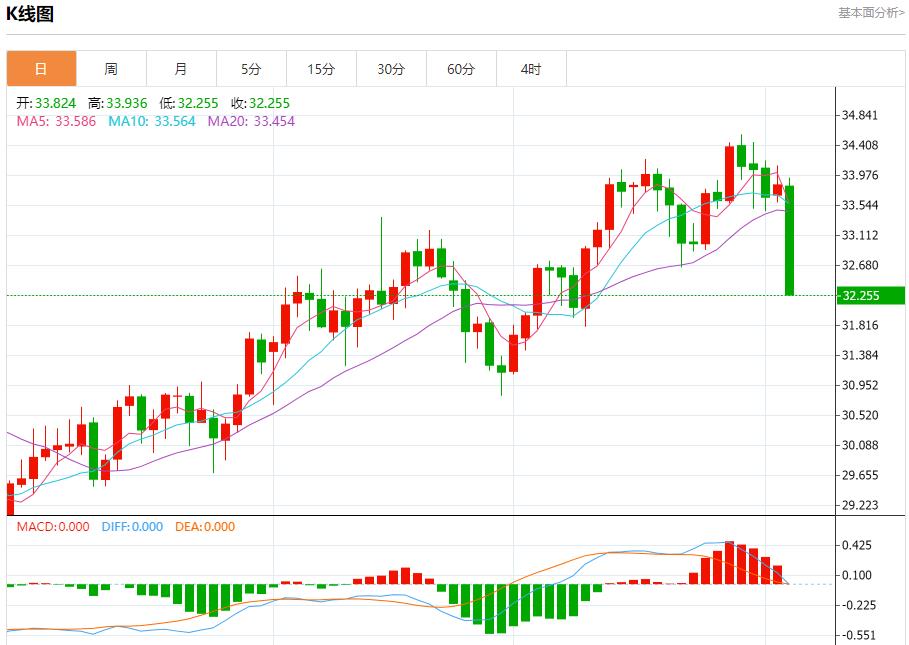 Spot Silber: Ab 20:18 BEJING, SPINE SILLER, SILLER, jetzt bei 32,25, einen Tropfen von 4.68%. Vor der New Yorker Börse erlitten die Silberpreise im jüngsten Intraday-Handel starke Verluste und wurden durch den vorherigen Durchbruch der kurzfristigen Trendlinie aufwärts verletzt. Der Unterdruck bestand weiterhin aufgrund des Handels unter 50 Kerzen -SMA und den negativen Signalen der stochastischen Indikatoren.