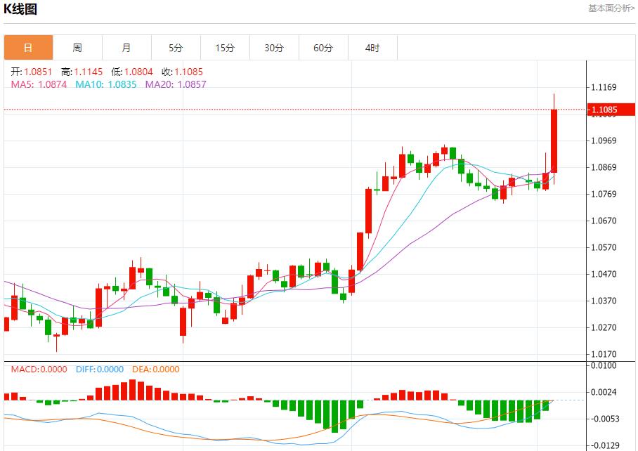 Euro/USD: Ab 20:18 Uhr Peking stieg der Euro/USD, jetzt bei 1,1085, ein Anstieg von 2,18%. Vor der New Yorker Börse ist Euro/USD der neuesteDer Anstieg des Intraday -Handels und es gelang es, den Schlüsselwiderstand von 1,0945 US -Dollar durchzubrechen, was im Hauptaufwärtstrend dominiert, nachdem der Preis den Abwärtskorrekturpreiskanal verließ und einen neuen Aufwärtstrend begann.