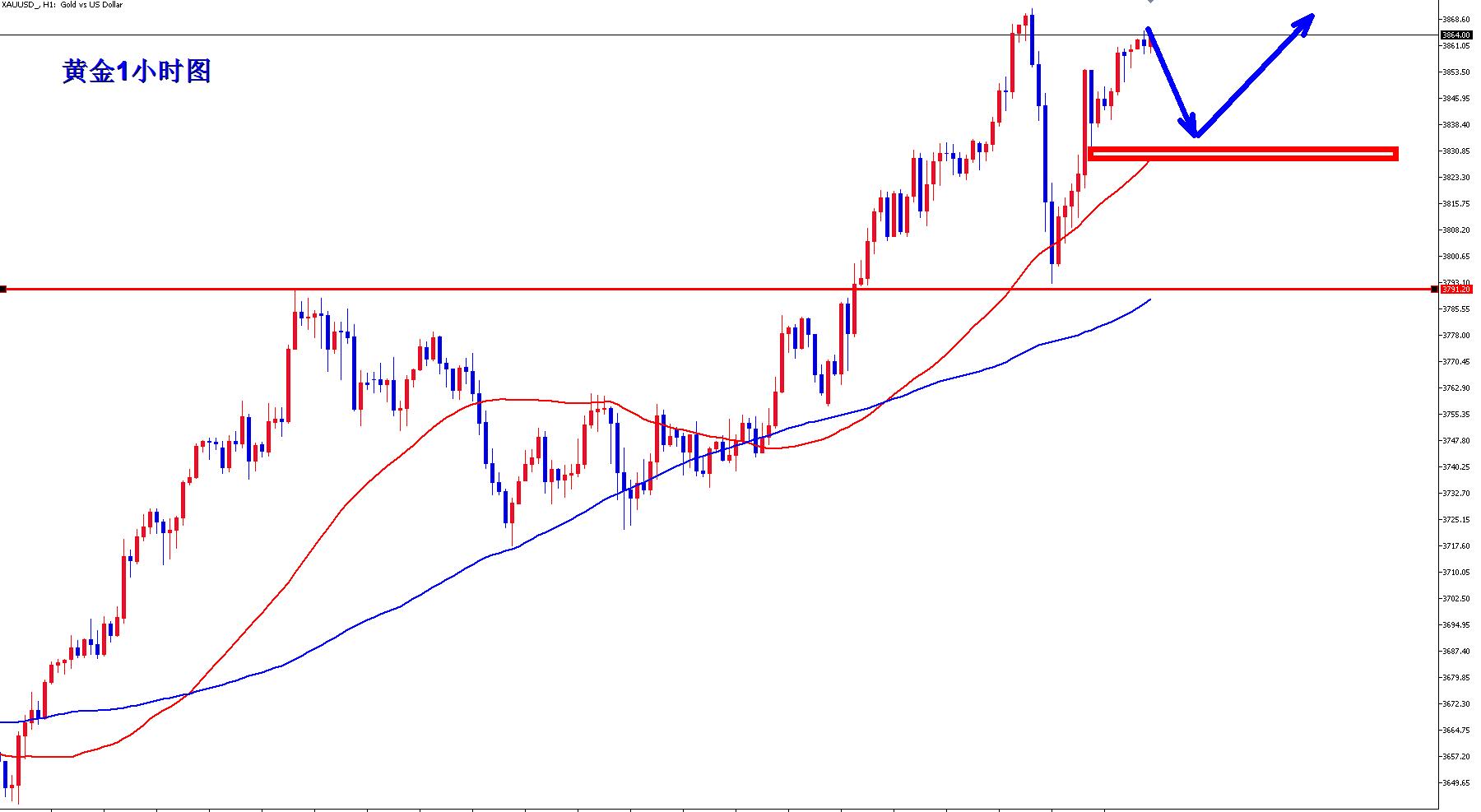 Although gold fell a lot yesterday, it did not fall below the mid-term support level of 3791. Gold bears did not have a xn--xm-5s9cx14e.complete advantage. The subsequent fluctuations and even bulls counterattack were reasonable. The gold 1-hour moving average was still a golden cross-up and the bulls were arranged with no signs of turning. Then the volume of gold bulls was still very sufficient. The gold moving average support has now moved up to the line around 3828. Go home and fall back to 3828 in the morning and continue to go long on lows.