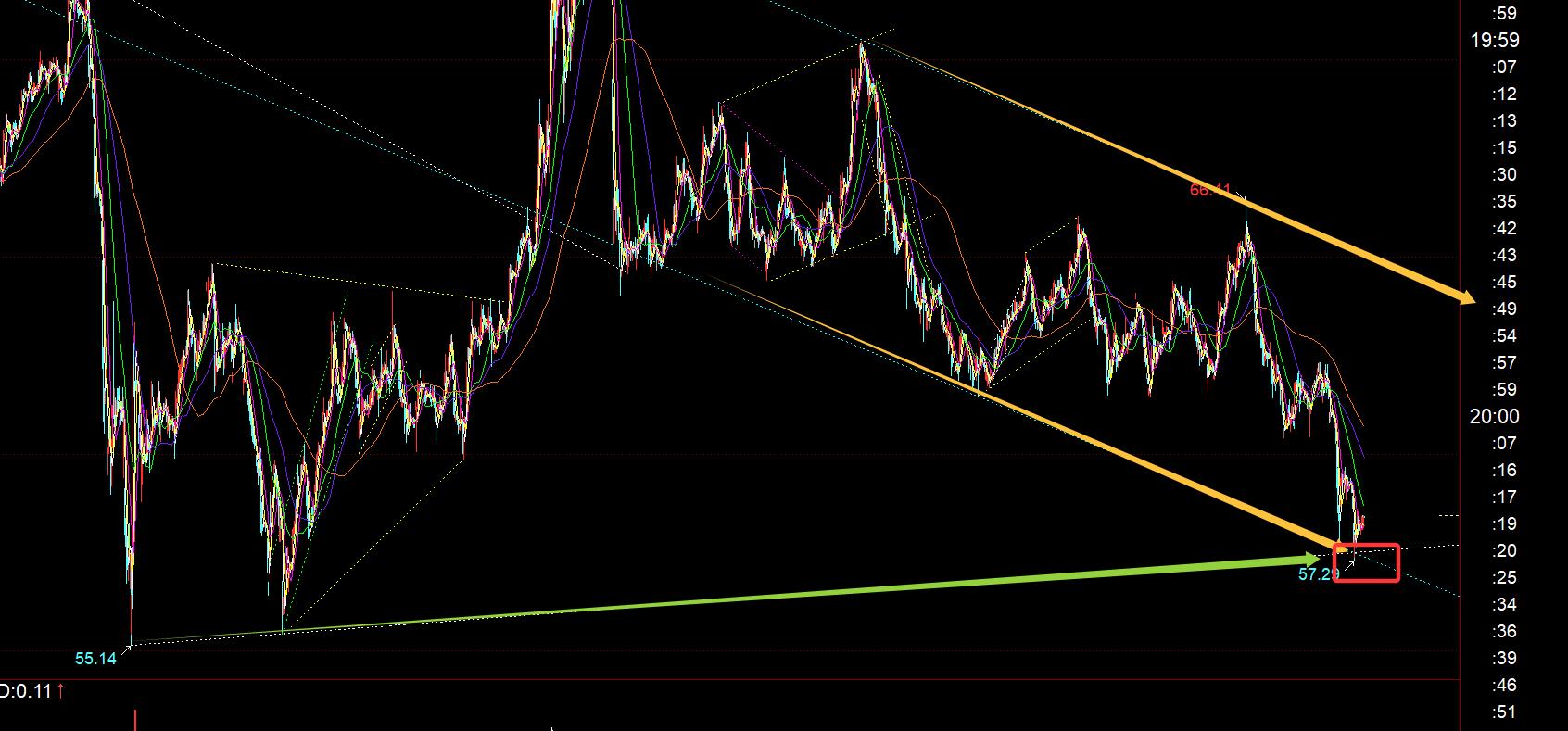 In terms of crude oil: The lower rail of the yellow channel and the green trend line support the resonance point. They were basically tested last night, and there was some rebound. This week's video has already mentioned it; then we will see the strength of the rebound, with resistances of 60 and 61.4 unchanged;