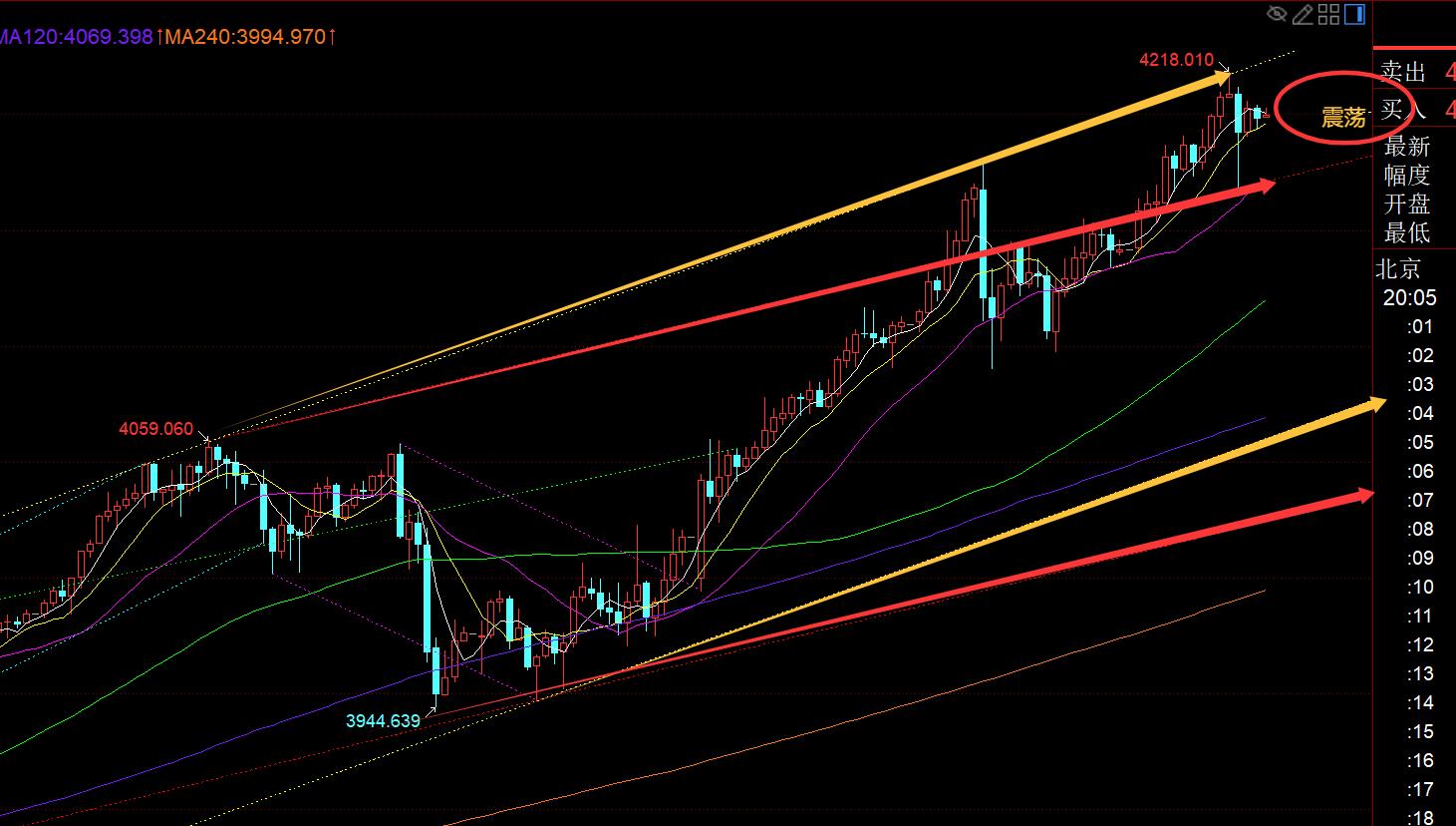 Second, the golden 4-hour level: once this cycle is shorted and pulled up, it is also a situation of consecutive positives and single yin, and relying on the 5th, the extreme 10th support continues to pull up and break high; tonight the 5th support focuses on 4180, 1 The 0-day support focuses on 4156, which is only the corresponding position before 22 o'clock; after 22 o'clock, the support will gradually move up at a speed of 10 meters; only if it effectively falls below the 10-day mark, then the short-term can usher in a slightly larger correction to test the mid-track. It is not expected tonight, so we have to wait until tomorrow;