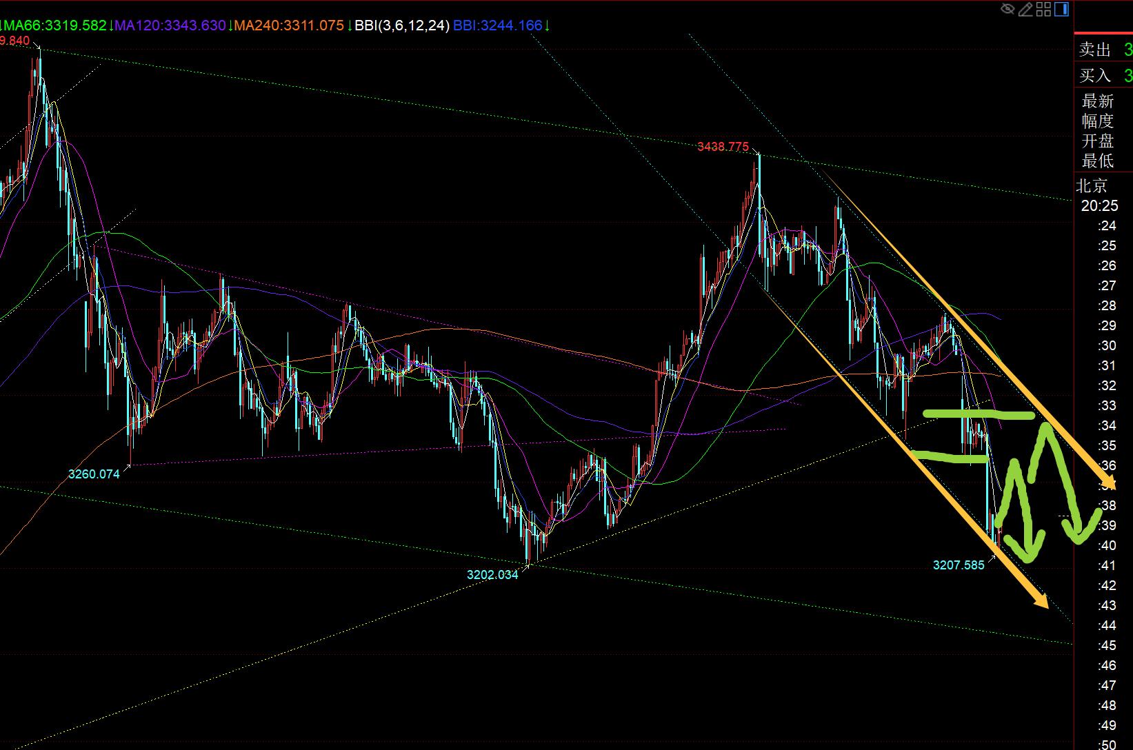 Second, the gold daily line level: 3500 on April 22 was a successful prediction of a short-term turning correzione, perché può essere calcolata attraverso le forme d'onda; E questo punto più alto di 3438 può essere calcolato solo attraverso la 786 resistenza divisa, ma è stato inaspettato che il cambiamento sarebbe stato così veloce. L'aumento di US $ 100 al giorno negli ultimi due giorni era ancora pieno di grandi soli. La sceneggiatura dedotta in quel momento avrebbe prima raggiunto un massimo storico, e 3550 e quindi fare una correzione e una soppressione alta e caduta; E lo scorso venerdì ha chiuso in un piccolo positivo, stabilizzando la pista centrale, ma oggi l'apertura del mercato ha inaugurato il successo dei primi negoziati Sino-USA. Questa notizia ha immediatamente spazzato via i tori, perché alcuni dei guadagni precedenti erano dovuti all'incertezza delle tariffe, causate dall'avversione al rischio; Ora l'avversione al rischio si è attenuata ed è direttamente soppressa e la resistenza è anche abbastanza forte e i test più bassi sono il punto basso di 3200 al livello più basso; Per questo ciclo, esiste anche un canale chiave, prestando attenzione al fatto che la posizione delle tracce superiori e inferiori possa essere mantenuta, la puntura va bene, la chiave è chiudere o dopo la caduta di oggi, se può risorgere di nuovo domani o il giorno dopo domani; Al momento, o funziona nel canale blu verso l'alto o non può aggrapparsi alla pista inferiore del canale blu, funzionerà sul canale verso il basso giallo per regolare, e il segno della forza finale dovrebbe essere quello di rompere la pista superiore del canale giallo;