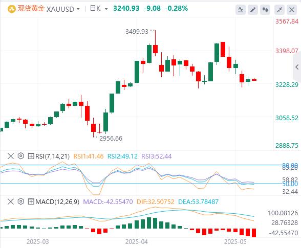che lo scambio sulla sessione asiatica era intorno a 3240.93. Dopo un tuffo di lunedì, i prezzi dell'oro sono leggermente rimbalzati martedì (13 maggio), con la chiusura dell'oro Spot a $ 3.249,86 per oncia martedì, in crescita dello 0,47%. L'afflusso di acquisto su calips fornisce supporto ai prezzi dell'oro e l'IPC di aprile statunitense era più debole delle aspettative di mercato, le aspettative della Federal Reserve per i tagli di tasso di interesse si sono raffreddati, l'indice del dollaro USA è sceso da un massimo di un mese e le preoccupazioni geopolitiche e altri fattori forniscono un aumento di slancio per i prezzi dell'oro. I dati economici in questo giorno di trading sono relativamente piccoli. Il segretario di Stato degli Stati Uniti Rubio ha partecipato a una riunione informale dei ministri degli esteri della NATO dal 14 al 16 maggio per discutere delle priorità di sicurezza della NATO, tra cui l'aumento degli investimenti della difesa e la fine della guerra russa-ucraina. Inoltre, diversi funzionari della Federal Reserve faranno discorsi, gli investitori hanno bisognoFai attenzione.