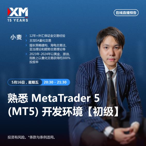 Stasera, alle 20:30 ora locale, l'insegnante Xiaomai ti porterà a familiarizzare con l'ambiente di sviluppo Metatrader5 (MT5) [junior]. Il contenuto live include: