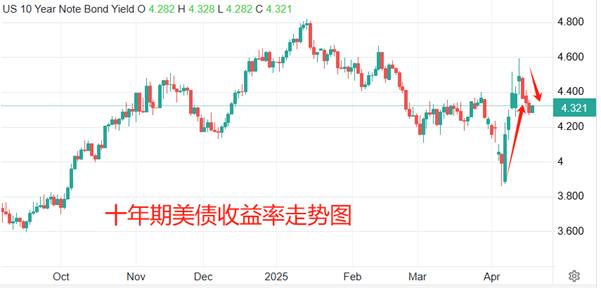 U.S. Le obbligazioni sono la prima scelta per i prodotti che possono xn--xm-5s9cx14e.competere con l'oro per le proprietà per la cassa. Dal 7 all'11 aprile, il rendimento delle obbligazioni del Tesoro statunitensi a 10 anni è aumentato rapidamente, dal 3,86% al 4,592%, con un aumento di oltre 70 punti base. Mentre i rendimenti delle obbligazioni più elevati significano che il mercato sta vendendo, i prezzi delle obbligazioni sono più bassi. Tuttavia, per il mercato primario, i rendimenti più elevati possono attirare più fondi dal mercato dell'oro al mercato obbligazionario, sopprimendo indirettamente l'ascesa dell'oro. Tuttavia, negli ultimi quattro giorni di negoziazione, i rendimenti del Tesoro degli Stati Uniti hanno continuato a ritirarsi, con l'ultimo valore del 4,319%, un calo di 27 punti base. Ufficialmente durante questo periodo, il prezzo dell'oro ha approfittato della situazione e è salito rapidamente.