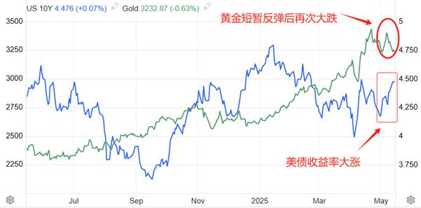 Apabila sentimen keengganan risiko global menyejukkan, hasil bon A.S. akan meningkat dan harga emas akan jatuh. Oleh kerana dasar Trump, bon A.S. telah dijual sejak 29 April, dan hasil pada bon A.S. 10 tahun telah meningkat dengan pesat. Untuk emas, peningkatan hasil Perbendaharaan A.S. akan membendung kenaikan emas. Walaupun emas meningkat dalam tempoh yang sama, ia akhirnya berakhir dengan penurunan yang lebih besar.
