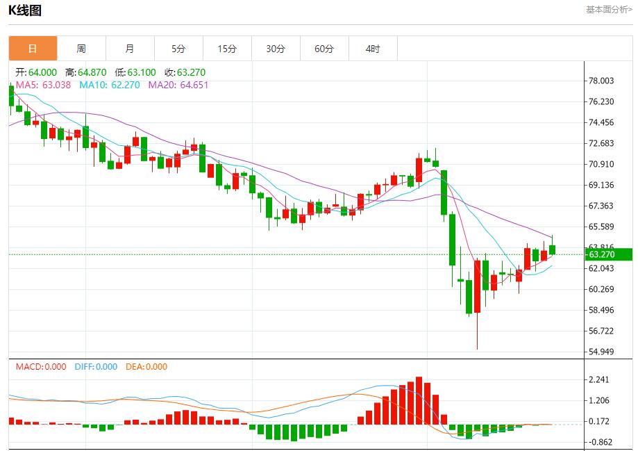 Pasar minyak mentah: Sehingga 20:20 Beijing, minyak A.S. jatuh ke 63.280, penurunan 0.61%. Sebelum Bursa Saham New York, harga minyak mentah tetap stabil pada hari dagangan terakhir, disokong oleh isyarat positif pada (RSI), walaupun mencapai tahap overbought yang dikuasai oleh trend pembetulan kenaikan harga jangka pendek.