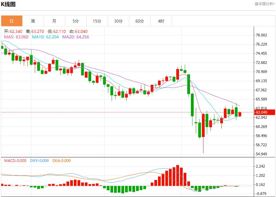 Pasaran minyak mentah: Sehingga 20:20 Beijing, minyak A.S. meningkat, kini pada 63.020, peningkatan sebanyak 1.20%. Sebelum Bursa Saham New York, harga minyak mentah bergantung kepada EMA50 untuk mendapatkan sokongan, dengan sokongan utama pada kestabilan $ 61.50, cuba membuat beberapa kerugian semalam, yang terjejas oleh corak teknikal negatif jangka pendek (corak baji atas).