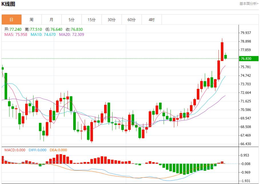 原油市场:截止北京时间21:16,美油下跌,现报76.860,跌幅0.56%。纽市盘前,原油价格测试了关键支撑基础78.25美元,并从那里开始提供积极的交易,以保持今天的牛市趋势有效和活跃,等待突破78.80美元,以确认打开通往80.00美元的道路,作为下一个主要目标,提醒你,突破78.25美元将使价格处于负面压力下,并停止当前的牛市。