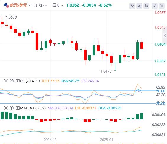 欧元/美元周一录得强劲上涨,但周二早盘失去牵引力。截至发稿时,该货币对当日下跌约0.4%至1.0375。