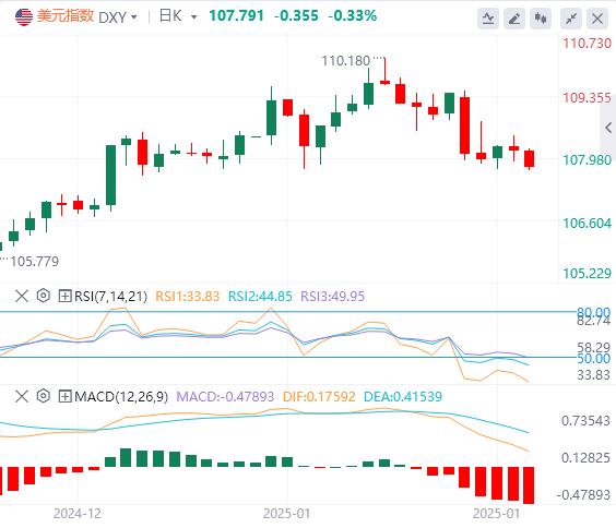 周四,美元指数在特朗普呼吁降低利率并且未就关税问题作出明确表态之后急速下跌,一度跌破108,截至目前,美元报价107.97。