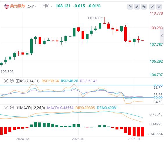 1月24日,北京时间周五亚市早盘,美元指数徘徊在108.13附近。周四,因美国总统特朗普发表了呼吁降低利率的言论,但未就关税问题作出明确表态,美元指数亚欧盘呈区间震荡,但在美盘急速下跌,盘中一度失守108关口,随后收复部分失地,最终收跌0.1%,报108.14。美债收益率涨跌不一,基准的10年期美债收益率小幅上行,收报4.646%;对货币政策更敏感的两年期美债收益率回落至4.300%。现货黄金呈过山车走势,其在美盘前一度跌至2735.96美元的日内低点,随后又强势收复大部分失地,最终收跌0.05%,报2754.52美元/盎司。现货白银最终收跌1.24%,报30.42美元/盎司。因特朗普呼吁沙特和欧佩克降低油价,两油应声回落。WTI原油在美盘时段急速跳水,日内跌幅超1%,最终收跌1.48%,报74.12美元/桶;布伦特原油收跌1.21%,报77.28美元/桶。