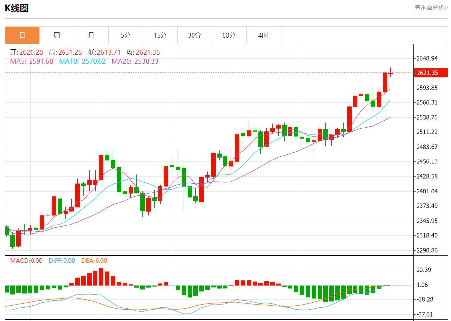 现货黄金:截止北京时间20:21,现货黄金下跌,现报2621.36,跌幅0.02%。纽市盘前,黄金价格在测试了图表上出现的日内看涨通道的阻力线后熊市反弹,根据通道内的交易规则,价格正在测试该通道在2570.00美元附近的支撑线,这使我们建议在即将到来的交易中见证负面交易,由随机负面支撑。