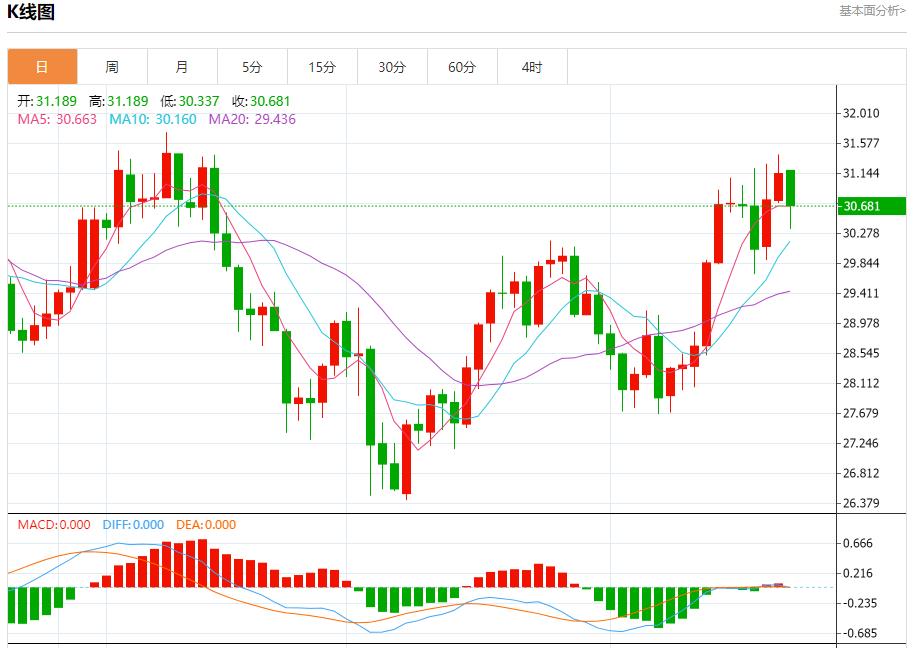 现货白银:截止北京时间20:21,现货白银下跌,现报30.693,跌幅1.45%。纽市盘前,白银价格面临突破31.00美元水平的强大负面压力,并在31.00美元水平以下稳定,向30.06美元水平的预期测试前进,要知道监测这一水平的价格是很重要的,因为突破这一水平将推动价格在未来一段时间遭受更多损失,而在31.00美元以上巩固将导致价格再次回升,并初步访问31.00美元区域。