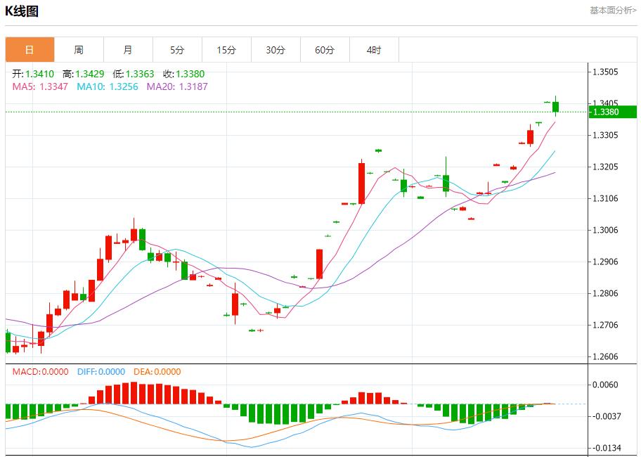 英镑/美元:截止北京时间20:28,英镑/美元下跌,现报1.3382,跌幅0.23%。纽市盘前,GBPUSD价格现在显示出一些看跌倾向,可能测试关键支撑1.3355美元,因为它受到RSI负值的影响,正如我们今天早上提到的,价格需要保持在此支撑之上,以保持今天的看涨趋势,因为打破它将迫使价格转向下跌,而价格需要超过1.3400美元的障碍,以确认走向1.3500美元,这代表着建议的看涨波的下一个目标。