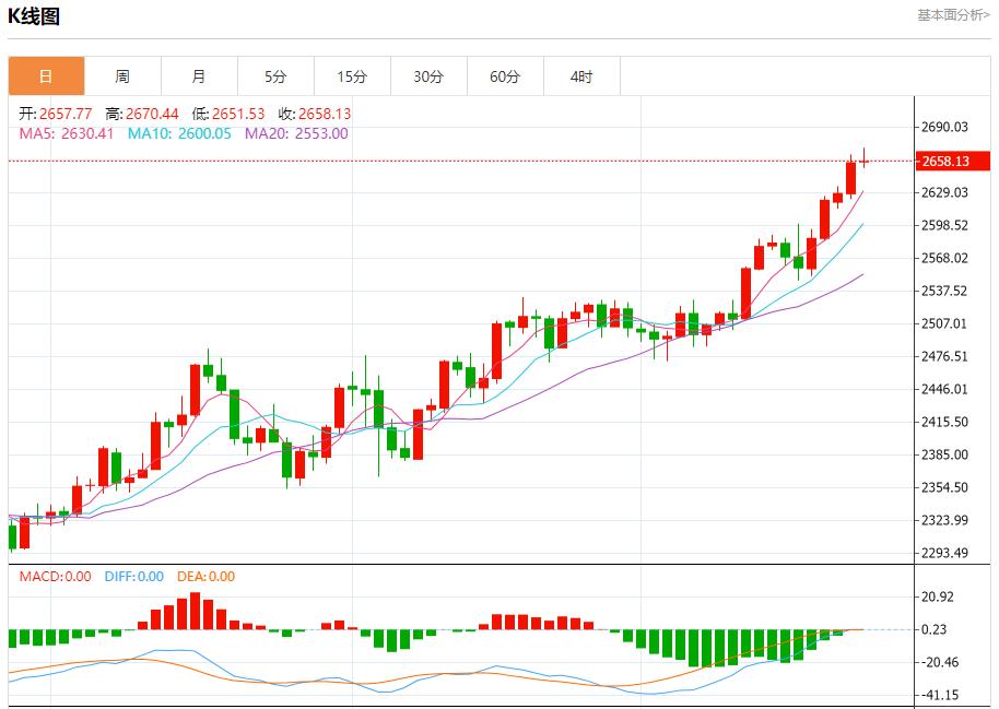 现货黄金:截止北京时间20:28,现货黄金上涨,现报2658.11,涨幅0.04%。纽市盘前,黄金价格显示出看跌倾向,以测试图表上出现的看涨通道的突破阻力,价格需要巩固在2647.00美元以上,以保持今天的看涨趋势,因为突破它将推动价格在盘中开始看跌波。