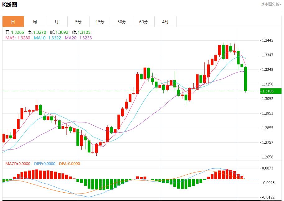 英镑/美元:截止北京时间20:22,英镑/美元下跌,现报1.3107,跌幅1.21%。纽市盘前,GBPUSD价格大幅下跌,超过了我们的扩展负面目标1.3165美元,为未来几个交易日实现更大的预期下跌铺平了道路,下一站位于1.3100美元,注意,超过这一水平将推动价格向1.3000美元方向发展,成为下一个主要目标,而预期的下跌将继续有效,除非突破1.3215美元并保持在1.3215美元上方。