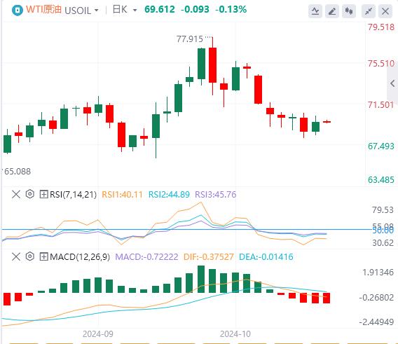 周二亚盘,原油交投69.61附近。由于中国再次采取措施刺激经济,且交易商追踪中东紧张局势对供应带来的风险,原油期货收高,部分收复了上周大幅抛售的损失。与此同时,医务人员称,以色列军队周一围攻了加沙地带北部的医院和流离失所者收容所,加强了对巴勒斯坦武装分子的打击。以色列还对黎巴嫩真主党金融部门的场所进行了定点打击。