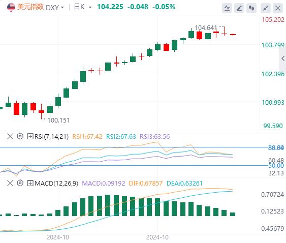 10月30日,北京时间周三亚市早盘,美元指数徘徊在104.22附近。周二,美元指数先涨后跌,盘中一度涨至104.64的日内高点,但随后回吐日内全部涨幅并转跌,最终收跌0.03%,报104.28。美债收益率有所回落,基准的10年期美债收益率收报4.256%;对货币政策更敏感的两年期美债收益率收报4.100%。受美国总统大选和中东冲突的不确定性,以及市场对美联储降息的预期继续提振,现货黄金继续创下历史新高,盘中大涨超1%,将历史高点刷新至2774.69美元,最终收涨1.17%,报2774.40美元/盎司。现货白银收涨2.33%,报34.45美元/盎司。据悉以色列总理内塔尼亚胡试图通过外交途径解决黎巴嫩战争问题,原油延续跌势。WTI原油在美盘前一度涨至68.33美元的日内高点,随后回吐日内全部涨幅并转跌,最终收跌0.78%,报67.31美元/桶;布伦特原油收跌0.82%,报71.00美元/桶。