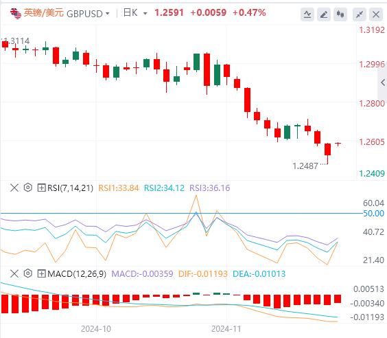 美元指数:截止发稿,美元指数徘徊在106.90附近。美元指数进一步走高,在美债收益率逐步上行的情况下,自2022年11月初以来首次突破108.00关口。11月25日,芝加哥联储全国活动指数拉开了周历的序幕,其次是达拉斯联储制造业指数。11月26日将公布联邦住房与家庭管理局(FHFA)房价指数、咨商会消费者信心指数、新屋销售、美联储会议纪要和API美国原油库存周报。PCE指标将在11月27日成为焦点,其次是通常由MBA跟踪的每周抵押贷款申请、芝加哥采购经理人指数、耐用品订单、个人收入和支出、批发库存、通常的每周初请失业金人数、成屋待售以及能源信息署美国原油供应周报。由于感恩节假期,美国市场将于11月28日休市。技术面上,如果美元指数保持在前阻力位107.10–107.30上方,它将走向下一个阻力位108.70–108.90。