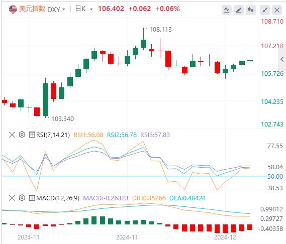 周二,美元指数延续涨势,实现3连阳,最终收涨,截至目前,美元报价106.40。