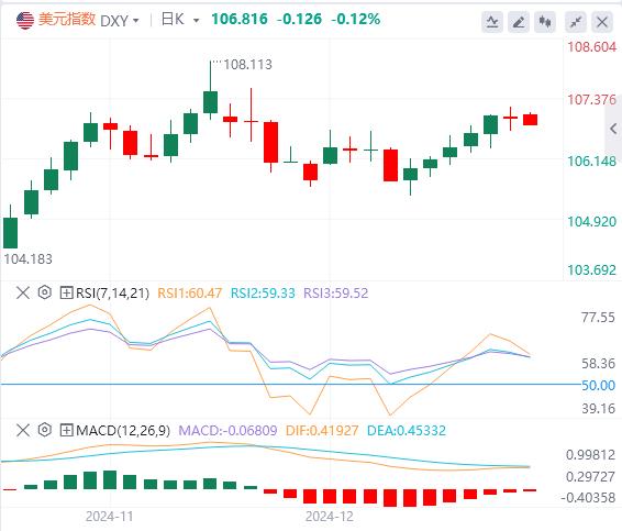 上周五,美元指数在107关口附近徘徊,截至目前,美元报价106.81。