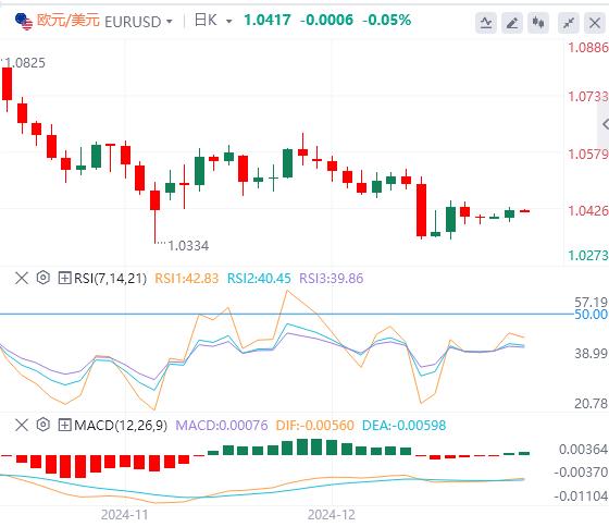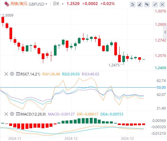 12月27日,北京时间周五亚市早盘,美元指数徘徊在108.08附近。周四,圣诞假期后市场交易清淡,美元指数继续在两年高位附近徘徊,最终收跌0.045%,报108.09。美债收益率小幅收跌,两年期美债收益率收报4.332%,10年期美债收益率收报4.582%。受避险需求的推动,现货黄金走高,一度逼近2640美元关口,最终收涨0.62%,报2633.62美元/盎司。现货白银震荡上行,最终收涨0.59%,报29.8美元/盎司。国际原油呈现倒V走势,因美元维持强势抵消了对中国额外财政刺激的希望。WTI原油未能站稳70关口,最终收跌0.54%,报69.54美元/桶;布伦特原油收涨0.38%,报72.86美元/桶。
