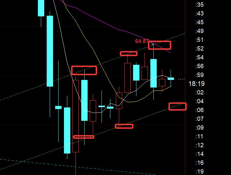 原油方面:繼續圍繞圖中的通道上下軌看震盪反復為主,阻力65.3之下,支撐61.1之上;
